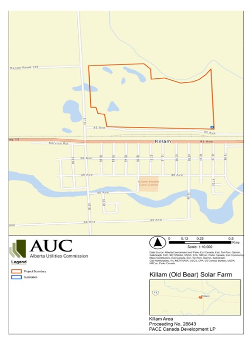 PACE Canada LP has proposed a 21.6MW utility-scale photovoltaic solar farm within the urban boundaries of Killam, Alberta. The proposed project would be built on 109 acres of cultivated land and the electricity produced will be connected to the FORTIS distribution network 25 kV which connects to the wider electricity grid through Sedgewick 137S.